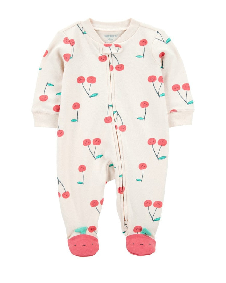 Super fofinho e confortável, o Macacão bebê manga longa com pezinho cerejas bege | Carter's será a pedida certa para a sua neném. Feito em malha de algodão, o macacão conta com fechamento por zíper inverso, possui martingale para garantir proteção e seu grande destaque está em sua estampa de cerejas. Seja descansando ou se divertindo com os papais, a peça é certeira para esses momentos tão lindos e únicos!