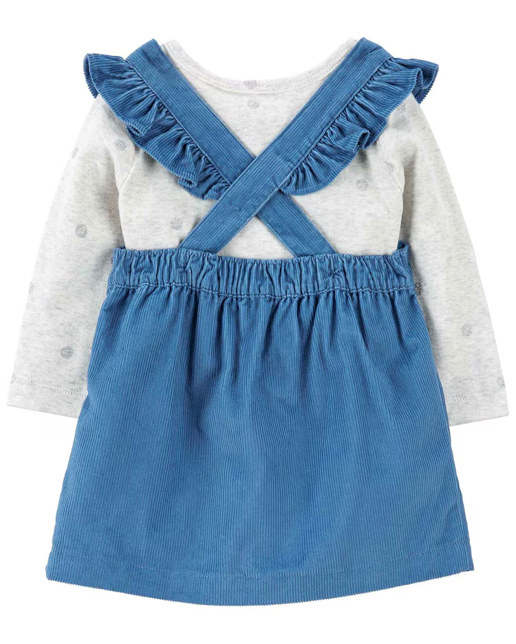 A Salopete bebê 2 peças poá metalizado com meia-calça aveludada multicor | Carter's é a combinação perfeita para sua baby. O conjunto é composto por três peças super delicadas, sendo uma camiseta de manga longa estampada, uma par de meias e uma linda salopete com botões frontais e babados. O look perfeito para um passeio. Invista!